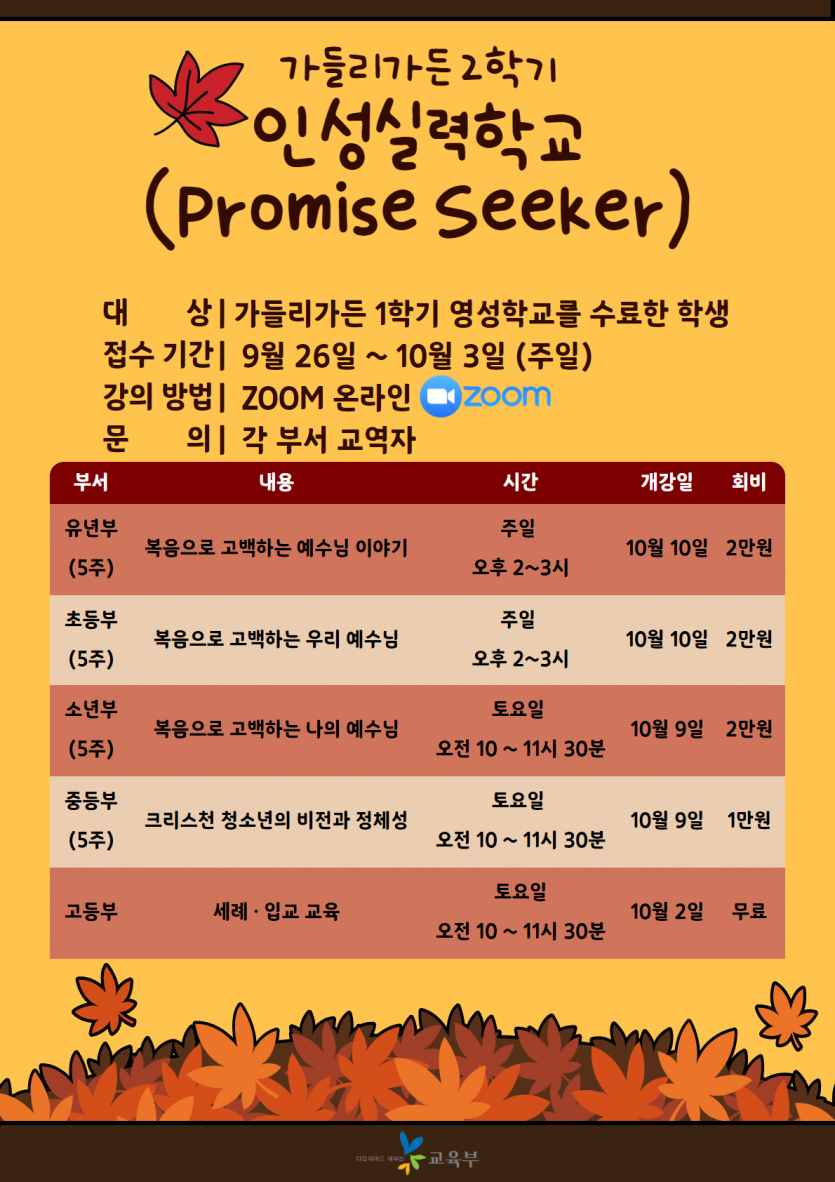 2021년 가들리가든 2학기 인성실력학교(Promise Seeker) 개강